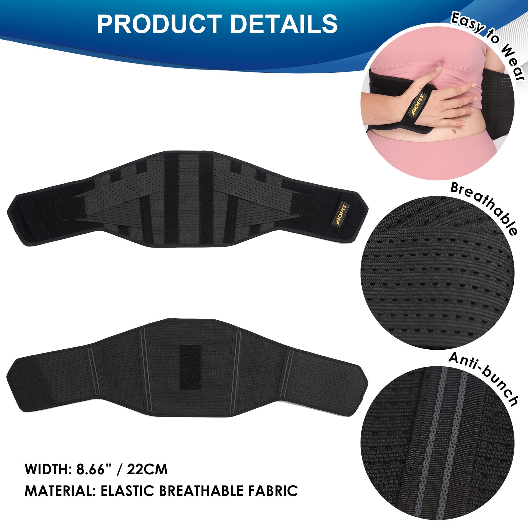 Aofit Back Brace with 6 Lumbar Support Stays, Removable Support Pad and Heating Pad