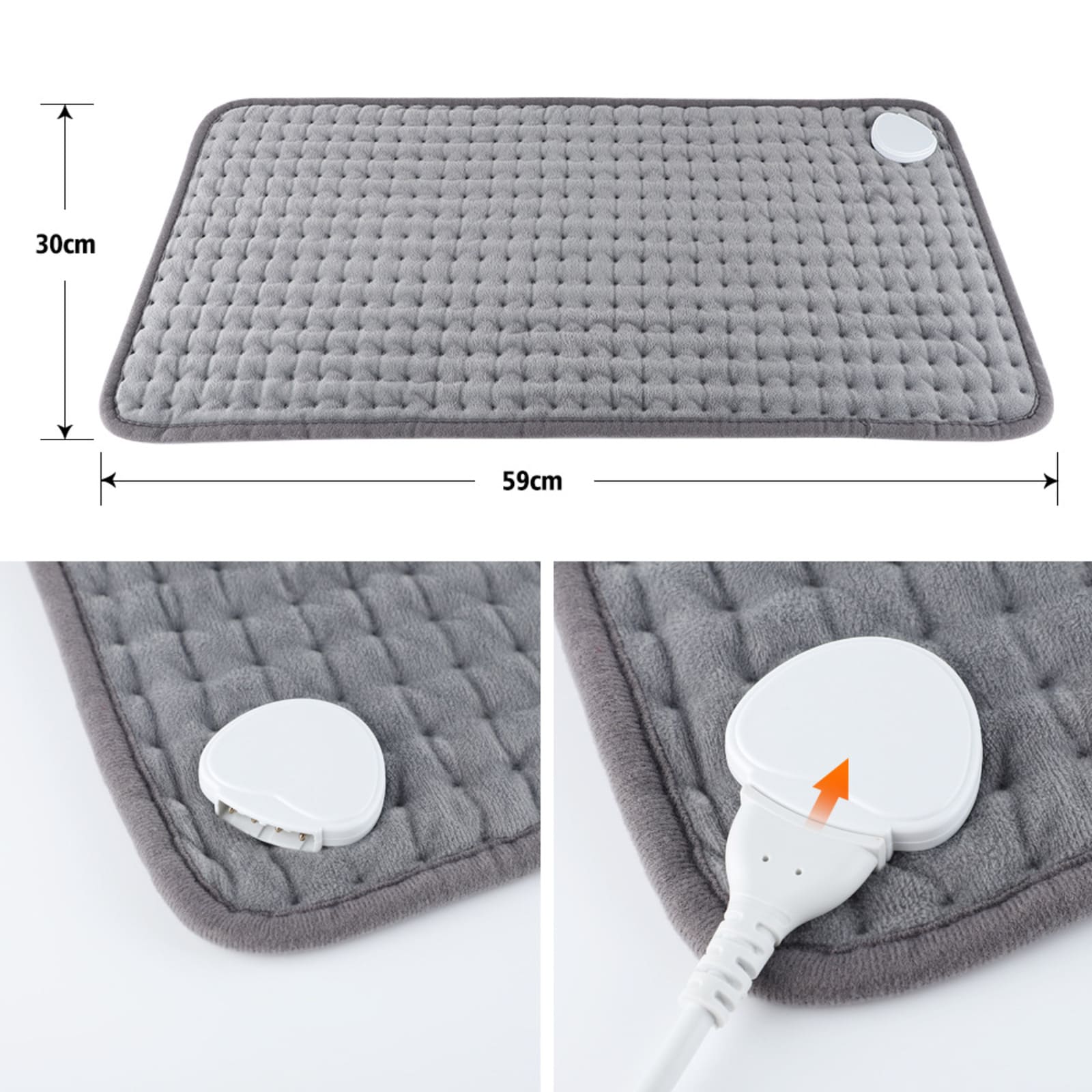 - The heating pad measures 12" x 24" to cover larger body areas. It features an extra-long 6-foot power cord for your convenience while you're relaxing on the couch or relaxing in bed. (Do not use it as a seat cushion)