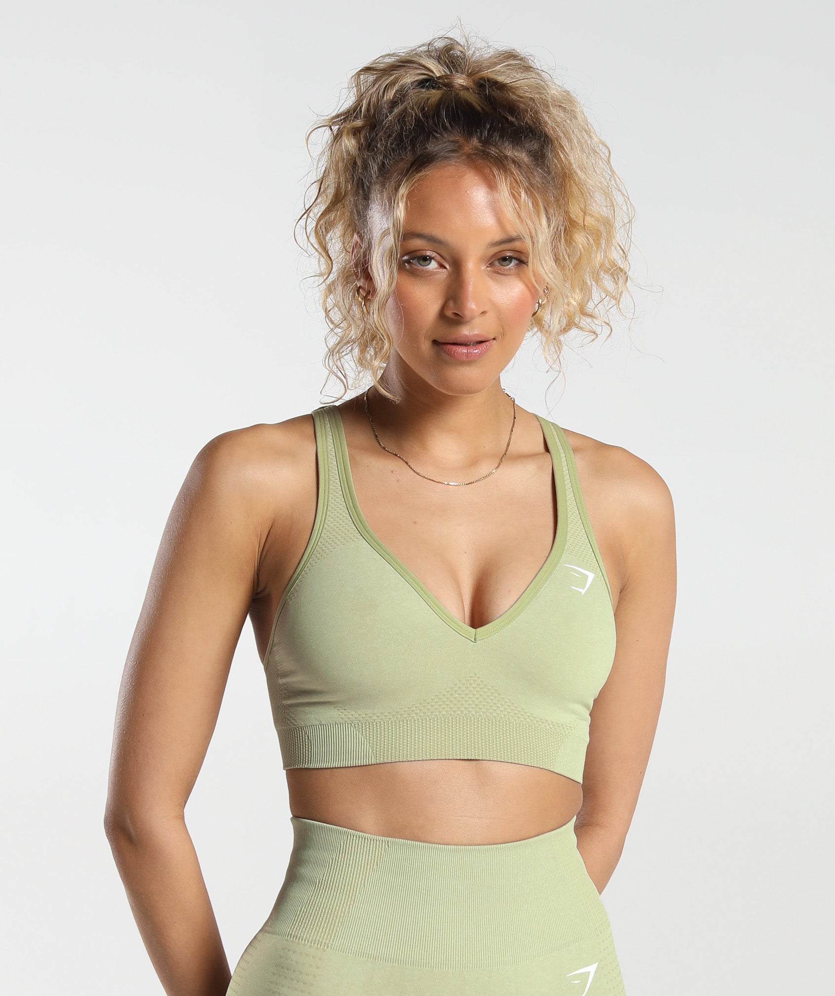 Gymshark Vital Seamless 2.0 V Neck Sports Bra - Light Sage Green Marl