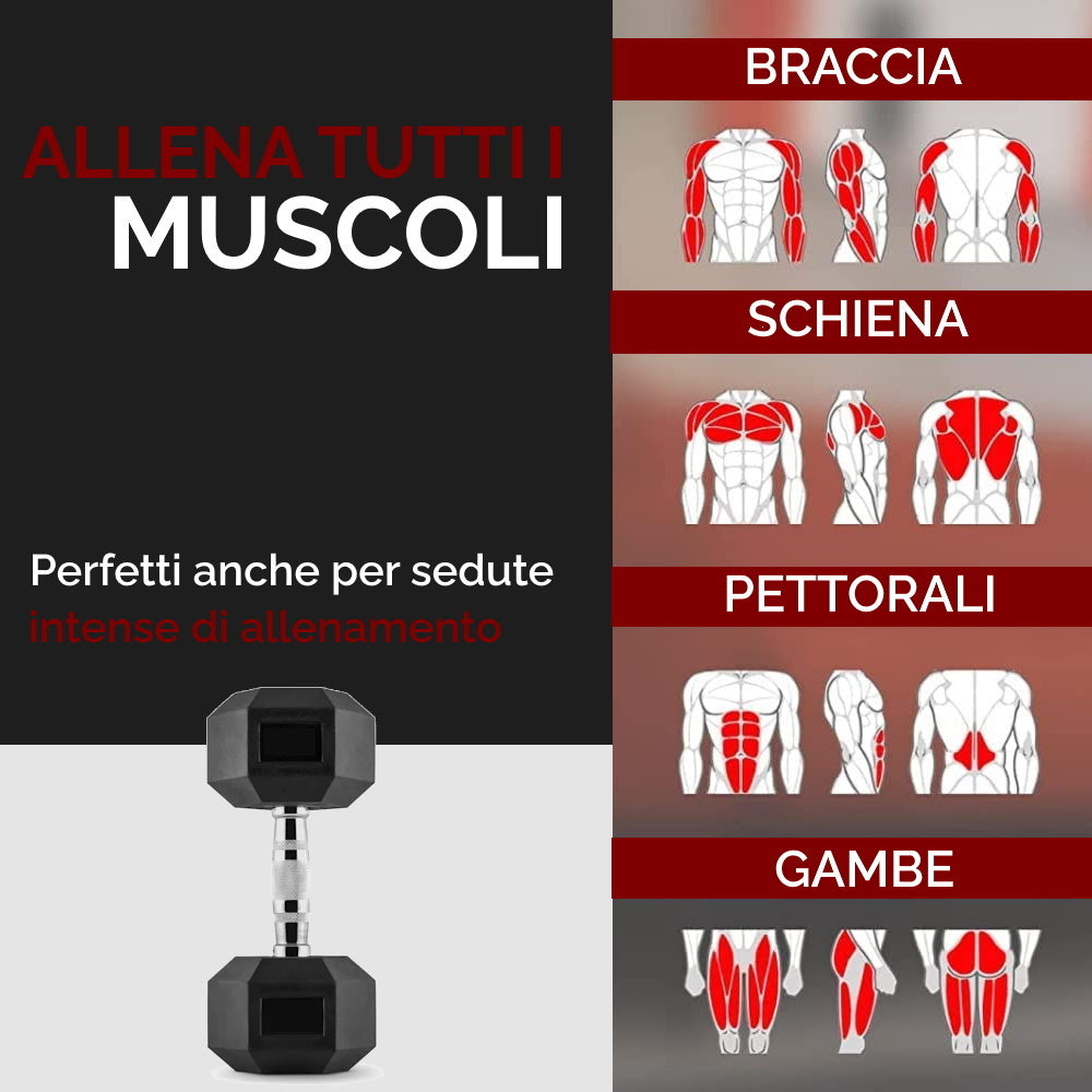 Manubri Palestra Esagonali Professionali da 5, 10, 15 Kg